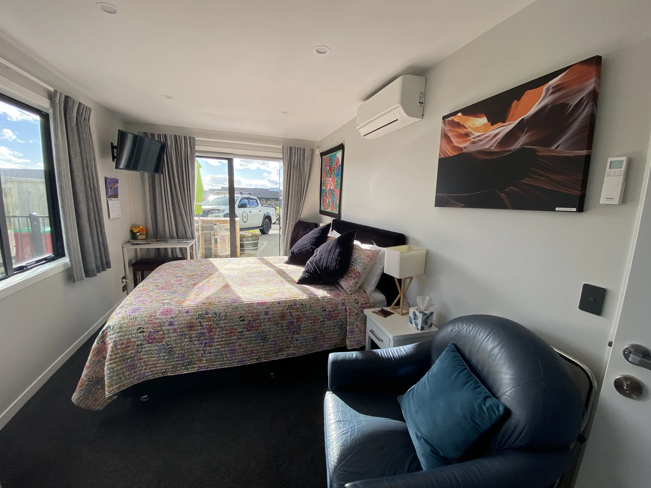 Harakeke Studio located right by the shores of Lake Taupo offer this stylish, upscale studio attached to your motorcycle friendly host’s home. The Studio is well designed providing you with your own privacy and parking right outside your bedroom door.
