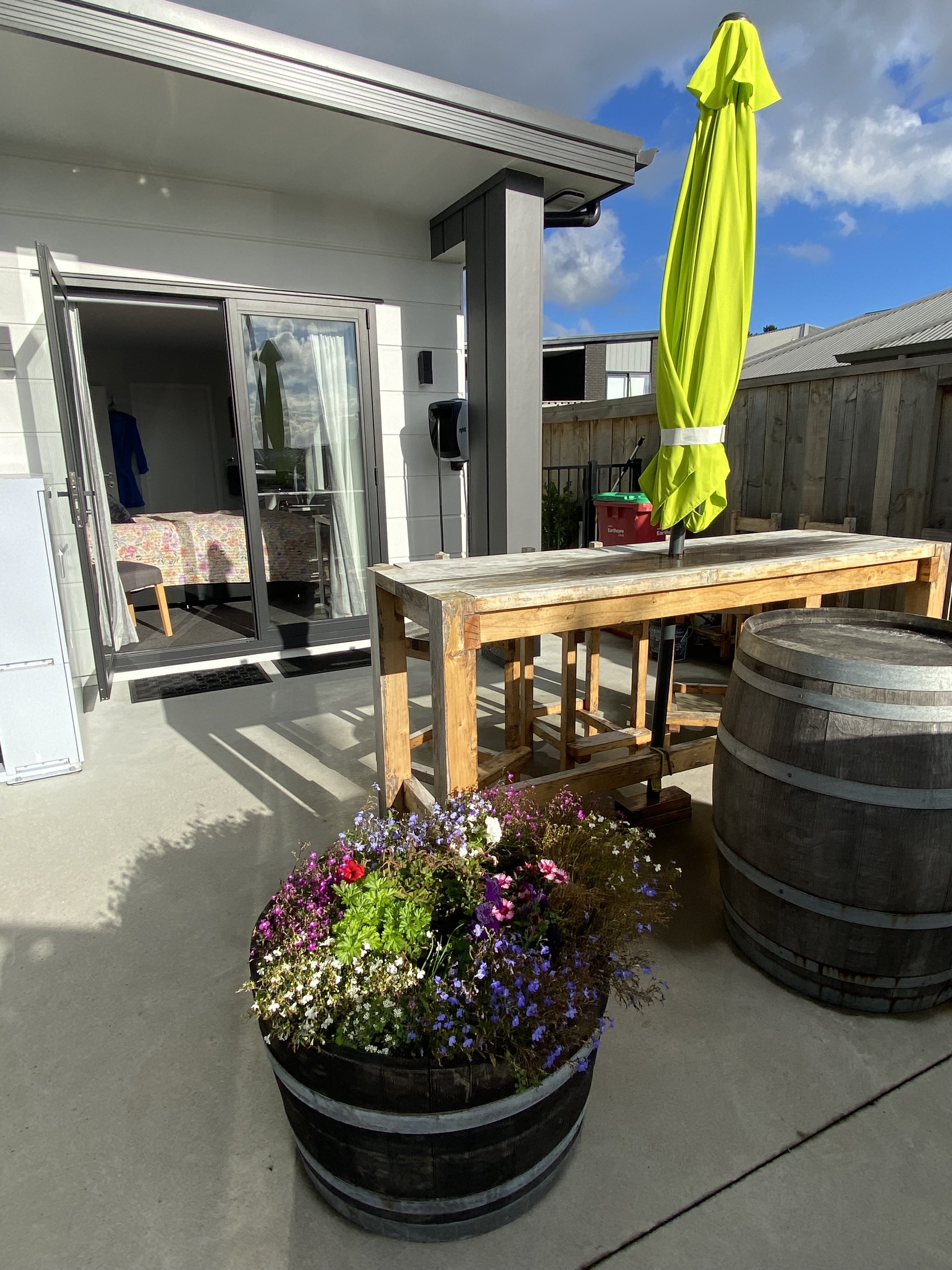 This self-contained space is very comfortable and quiet, close to the airport and 7.3 km from the town centre. Lake access is close by and a supermarket, restaurant, stores and cafes are within walking distance. It has easy access to and from SH1 whether you are riding south or north and a very doable ride from the ferries in Wellington.